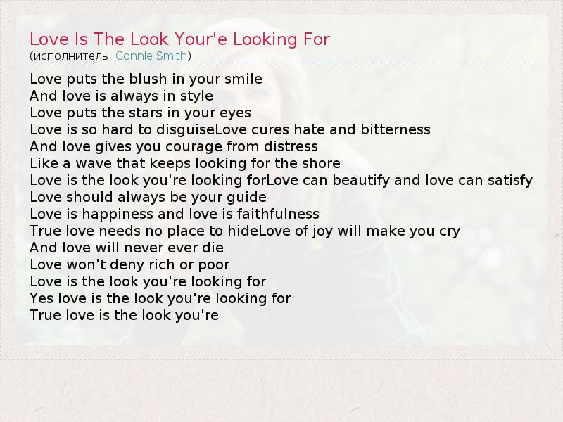 А как ты думаешь, о чем песня "Love Is The Look Your'e Looking For" ?