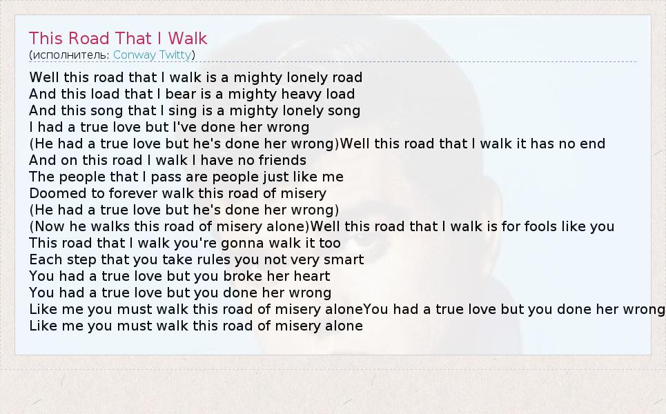А как ты думаешь, о чем песня "This Road That I Walk" ?
