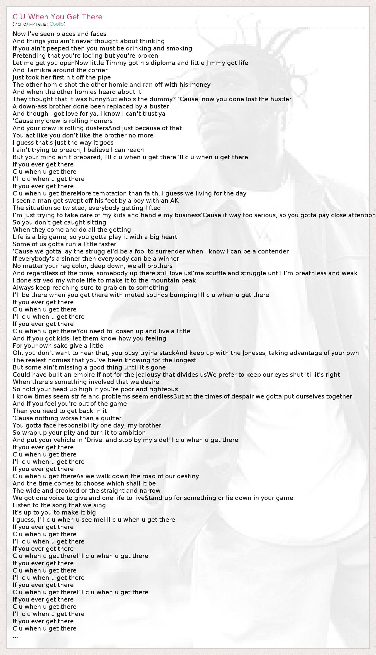 ГлавнаяИсполнителиCoolioC U When You Get There