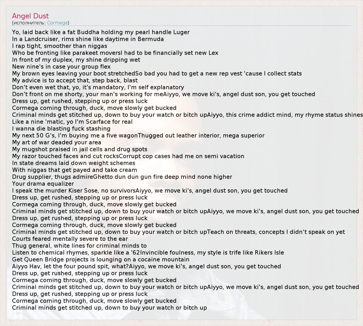 А как ты думаешь, о чем песня "Angel Dust" ?