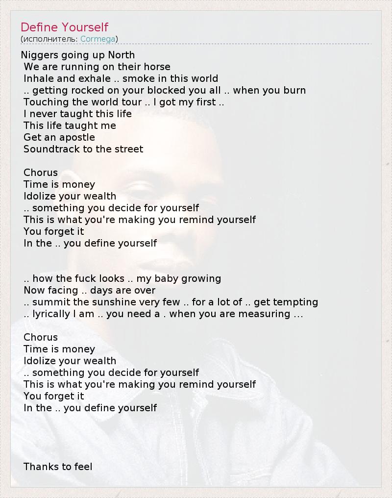 А как ты думаешь, о чем песня "Define Yourself" ?