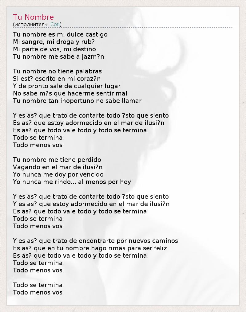 А как ты думаешь, о чем песня "Tu Nombre" ?