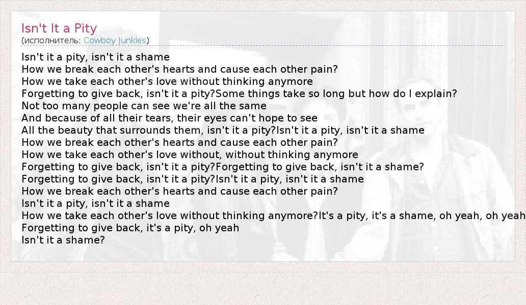 А как ты думаешь, о чем песня "Isn't It a Pity" ?