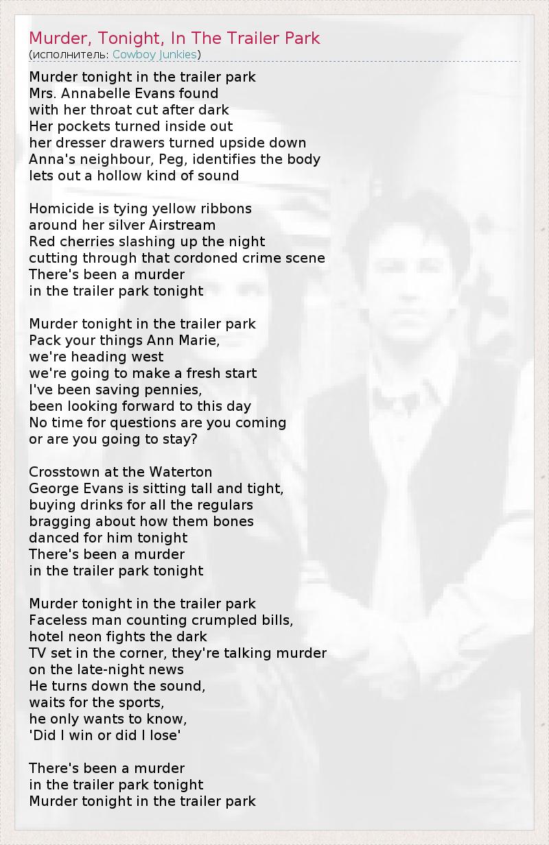 А как ты думаешь, о чем песня "Murder, Tonight, In The Trailer Park" ?