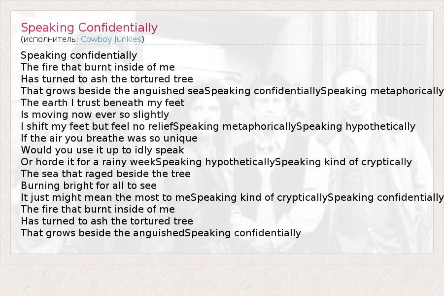 А как ты думаешь, о чем песня "Speaking Confidentially" ?