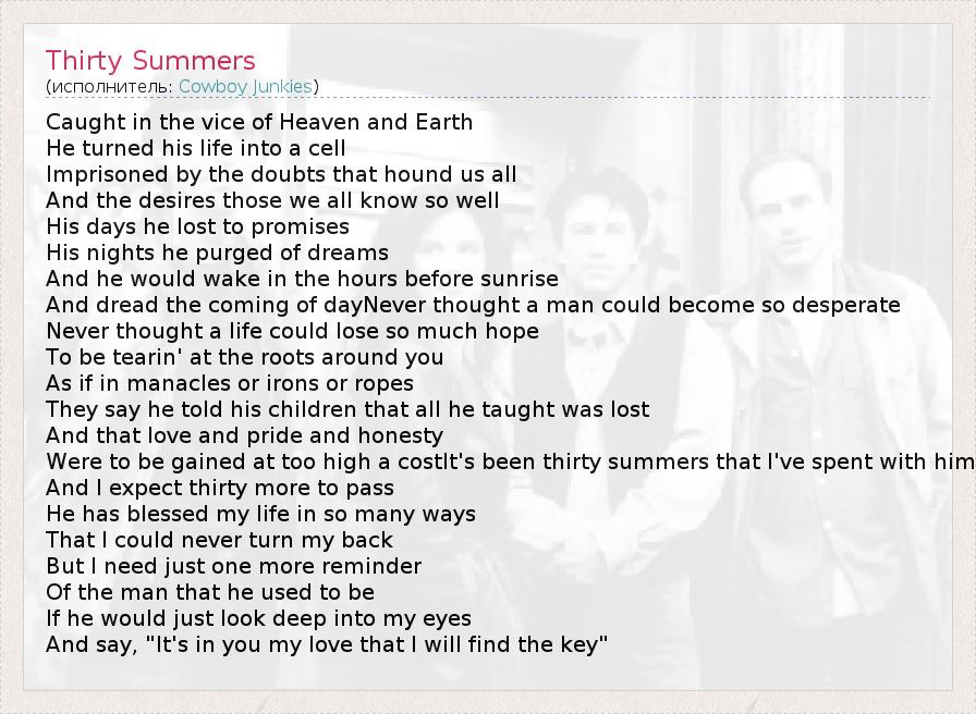 А как ты думаешь, о чем песня "Thirty Summers" ?