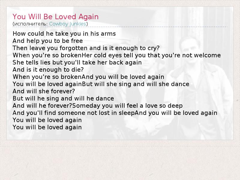 А как ты думаешь, о чем песня "You Will Be Loved Again" ?