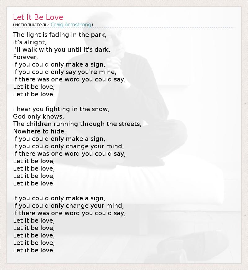 А как ты думаешь, о чем песня "Let It Be Love" ?