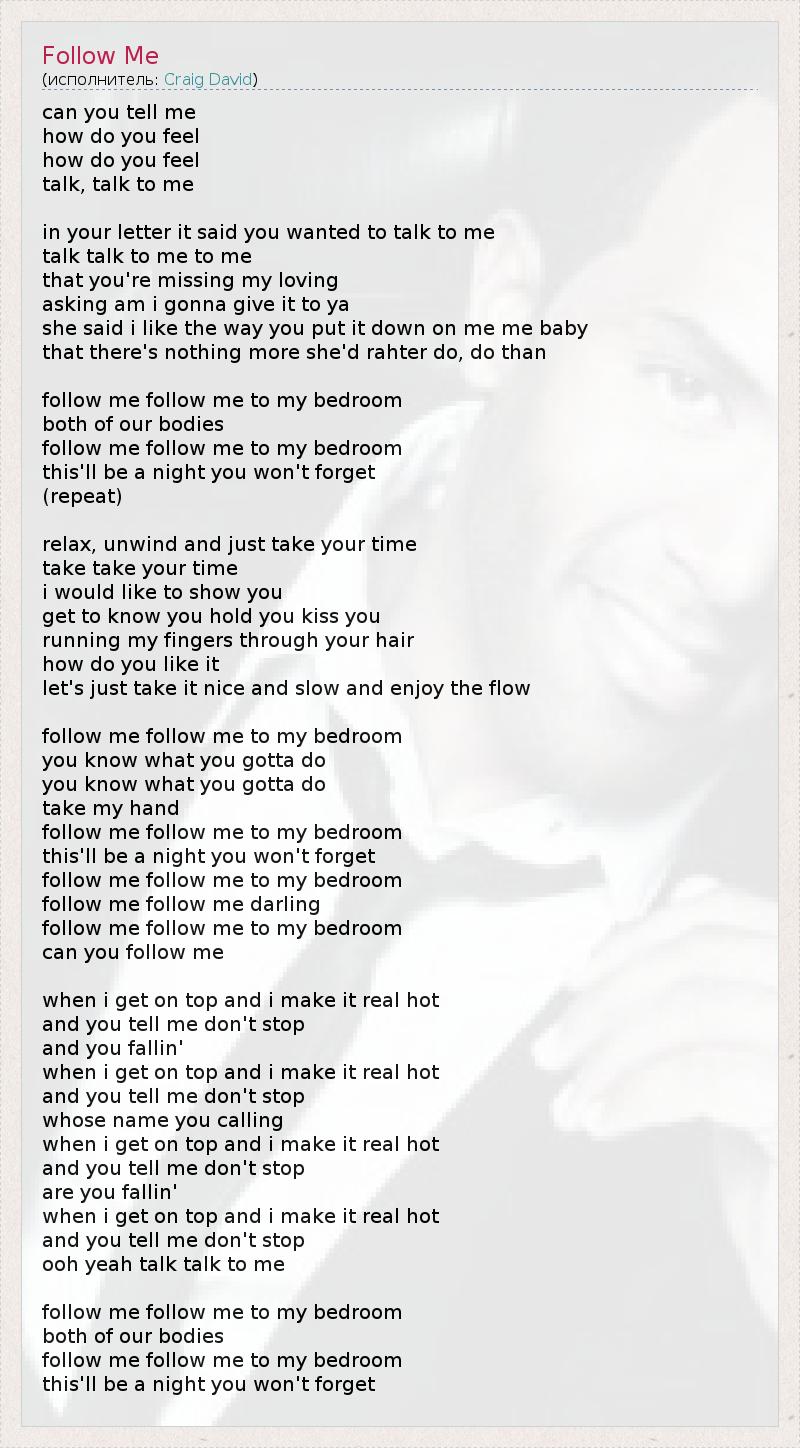 Это интересно:Крейг Дэвид родился в Саутгемптоне 5.05.81. Музыкой начал увлекаться с самого раннего возраста. Его отец тоже обожал музыку и играл в группе "Eboney Rockers". Он научил сына играть на гитаре. В подростковом возрасте Крейг начал писать песни. А уже с 14 лет устроился работать диджеем на пиратскую радиостанцию, специализирующуюся на гаражной музыке. Время от времени он играл в местных клубах.... продолжение