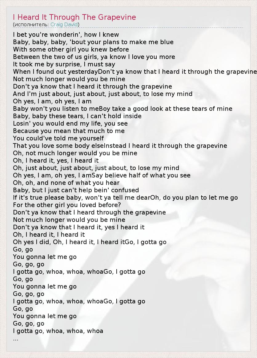 А как ты думаешь, о чем песня "I Heard It Through The Grapevine" ?