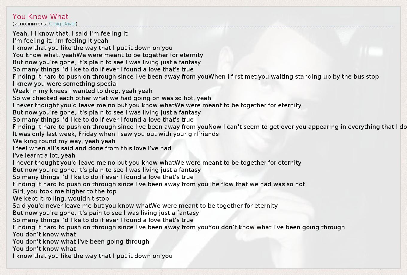 Это интересно:Крейг Дэвид родился в Саутгемптоне 5.05.81. Музыкой начал увлекаться с самого раннего возраста. Его отец тоже обожал музыку и играл в группе "Eboney Rockers". Он научил сына играть на гитаре. В подростковом возрасте Крейг начал писать песни. А уже с 14 лет устроился работать диджеем на пиратскую радиостанцию, специализирующуюся на гаражной музыке. Время от времени он играл в местных клубах.... продолжение