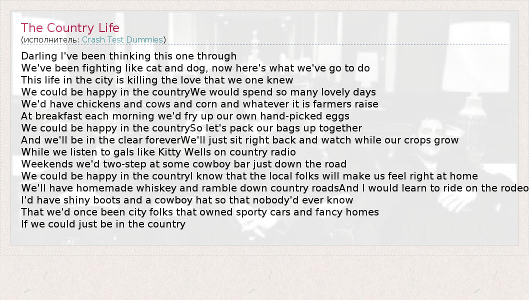 А как ты думаешь, о чем песня "The Country Life" ?