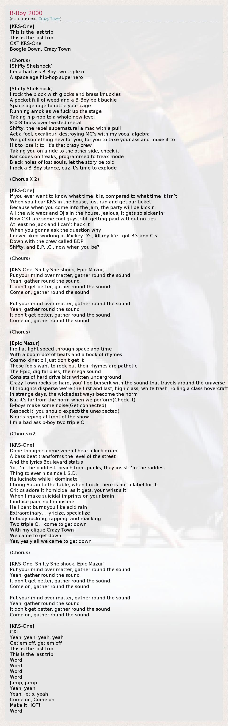 А как ты думаешь, о чем песня "B-Boy 2000" ?