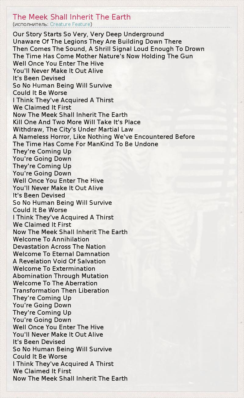 А как ты думаешь, о чем песня "The Meek Shall Inherit The Earth" ?