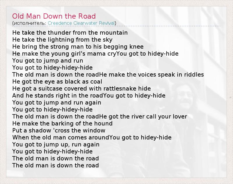 А как ты думаешь, о чем песня "Old Man Down the Road" ?