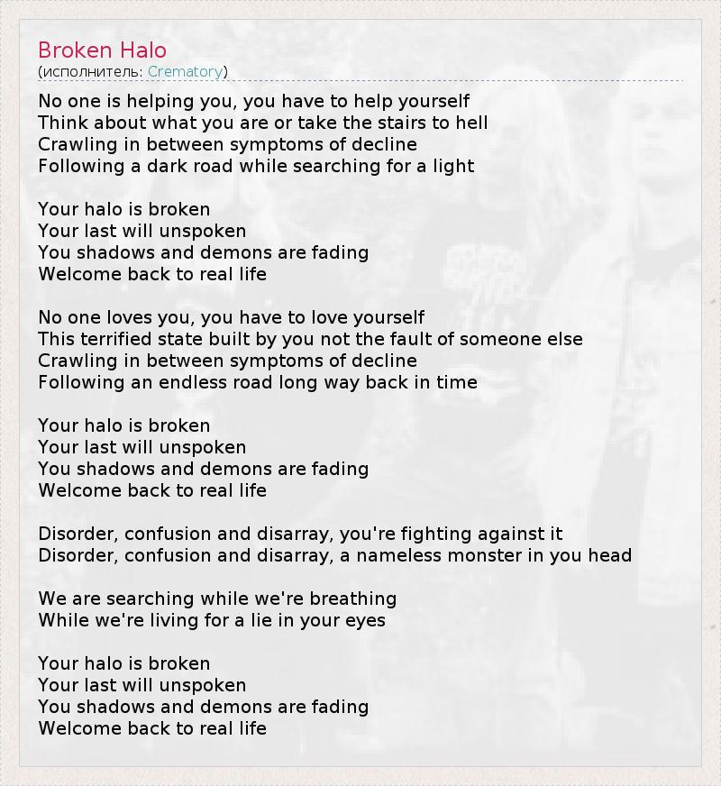 А как ты думаешь, о чем песня "Broken Halo" ?