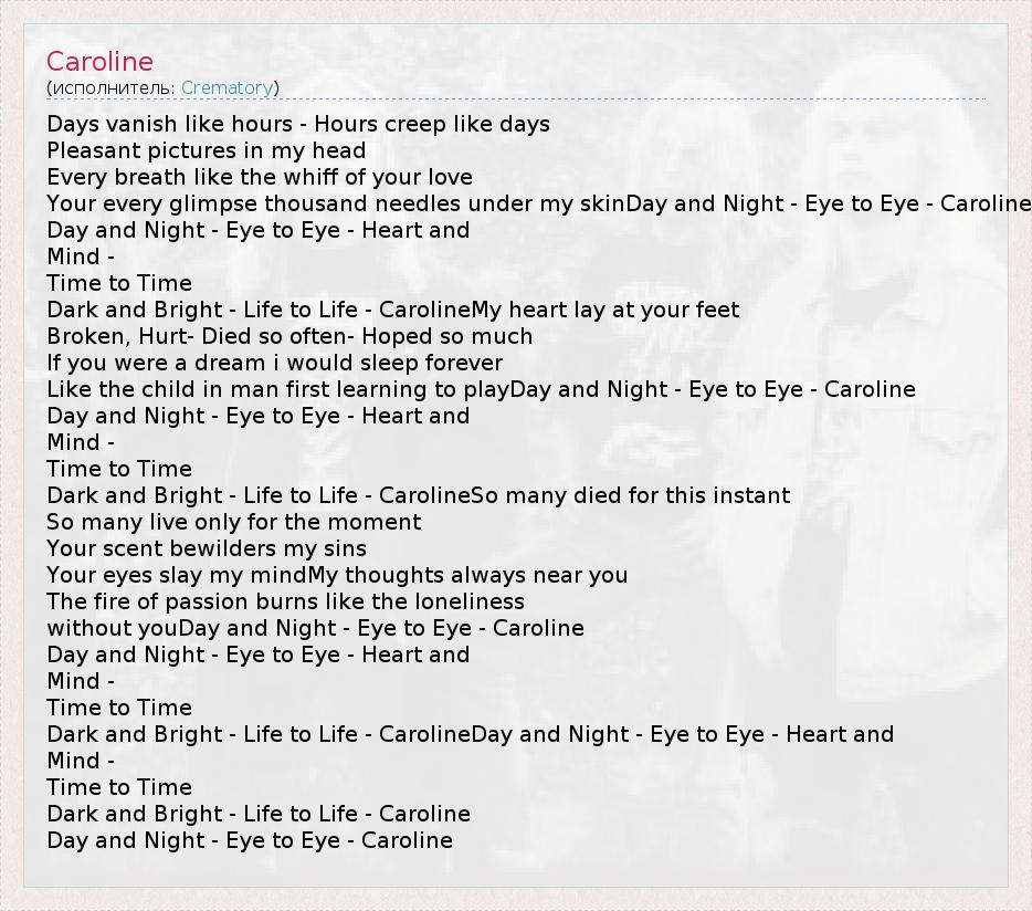 Your every glimpse thousand needles under my skinDay and Night - Eye to Eye - Caroline