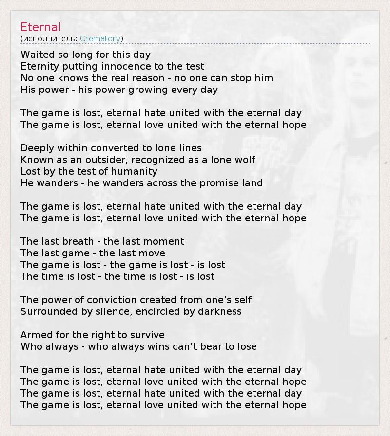 А как ты думаешь, о чем песня "Eternal" ?