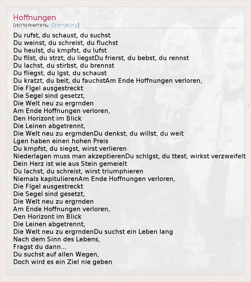 А как ты думаешь, о чем песня "Hoffnungen" ?