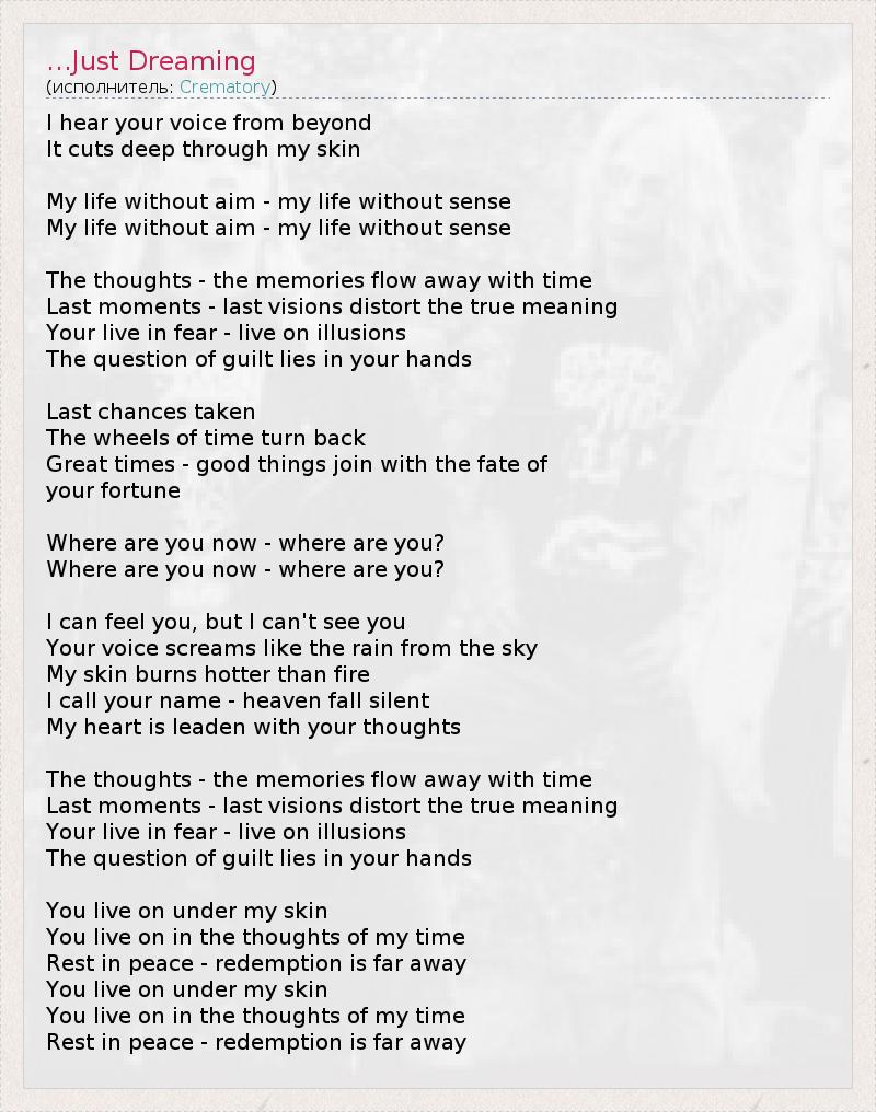А как ты думаешь, о чем песня "...Just Dreaming" ?