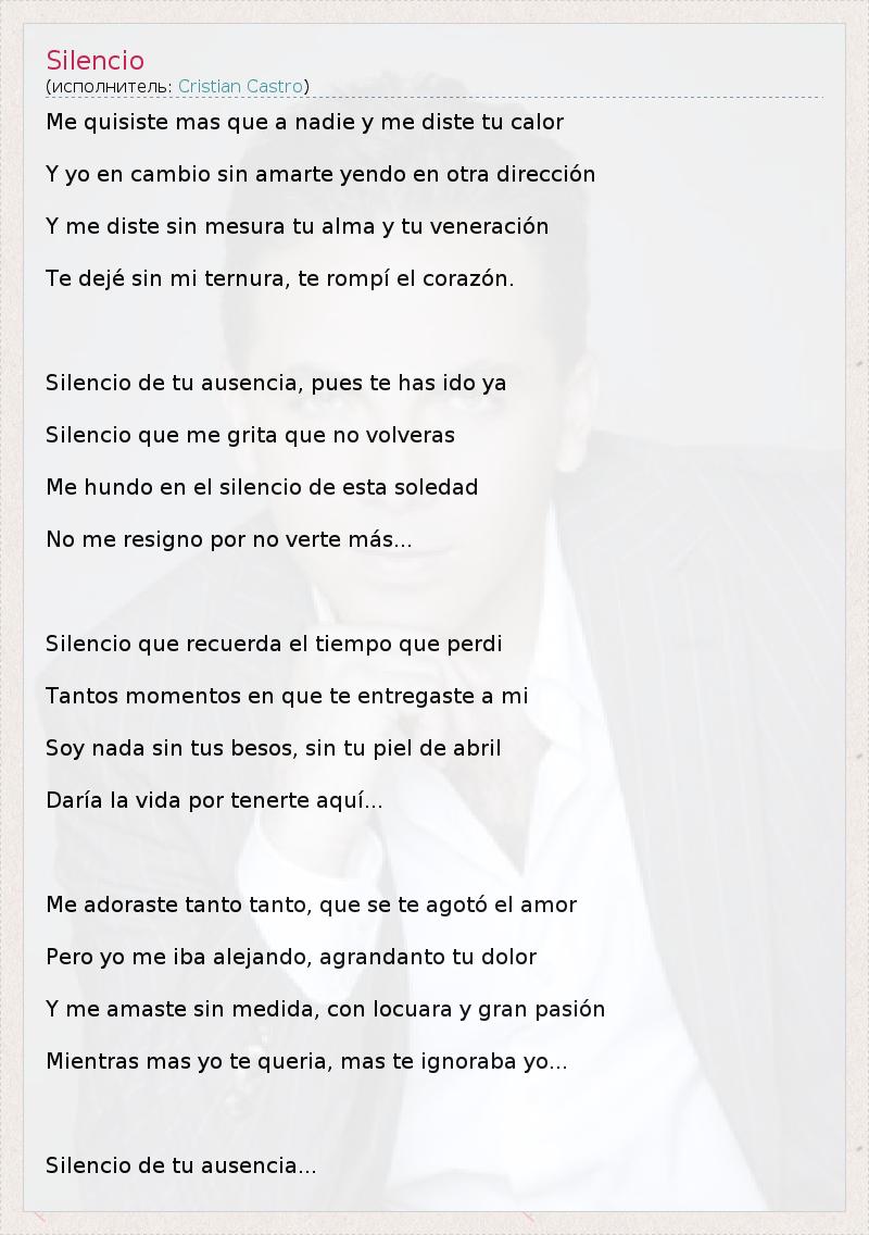 Это интересно:Cristian Castro (born Cristian Sáenz Castro or Cristian Valdez on December 8, 1974 in Mexico City) is a Grammy Award-nominated Mexican pop singer. He is referred to as "Christian Castro", "Cristian", or "El Gallito Feliz" (The Happy Little Rooster).Castro began his singing career in 1992 with the release of Agua Nueva. The album received mixed reviews because Castro's voice was said to be too low-pitched. The album was a big success nonetheless, with the smash hit "No podrás" topping the charts for weeks. After participating in various telenovelas and recording some albums as a teenager, Castro began his "internationalization" in 1993,... продолжение