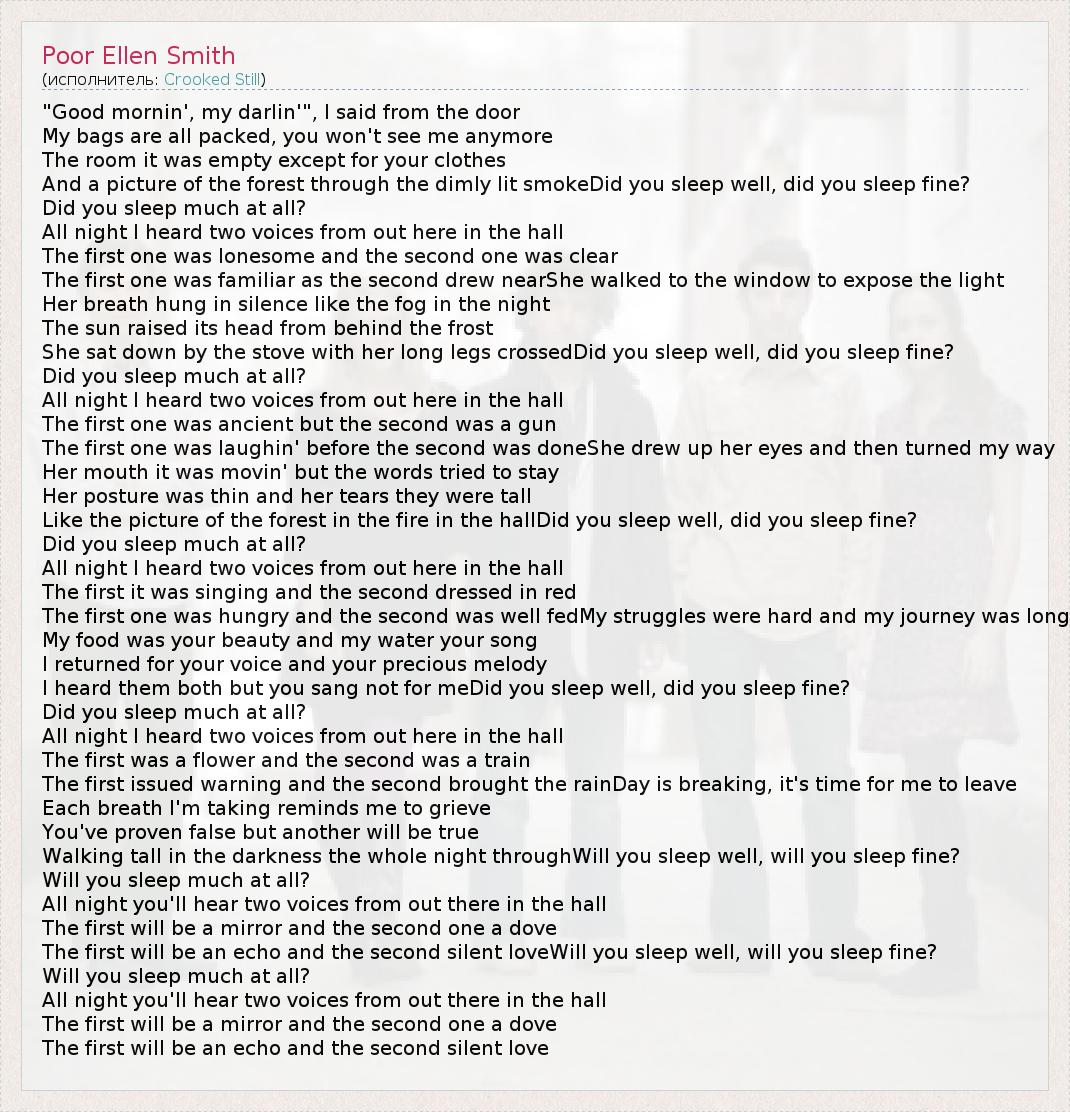 А как ты думаешь, о чем песня "Poor Ellen Smith" ?