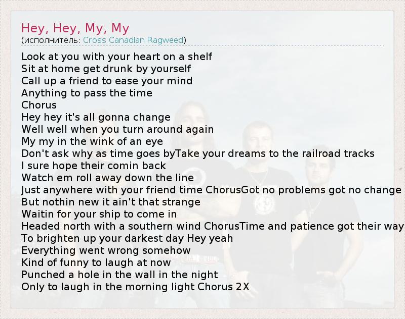 А как ты думаешь, о чем песня "Hey, Hey, My, My" ?