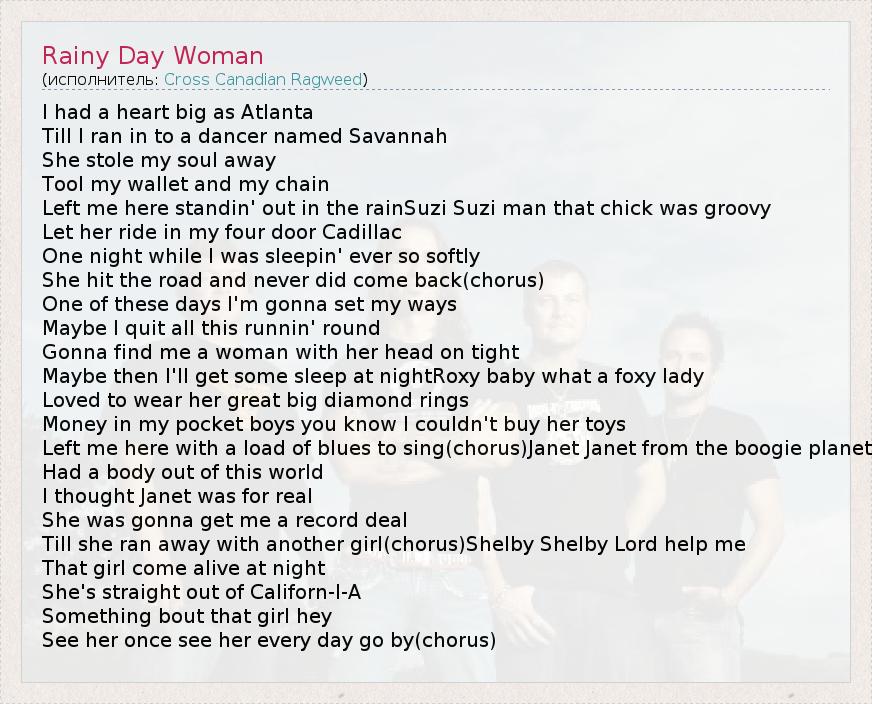 А как ты думаешь, о чем песня "Rainy Day Woman" ?