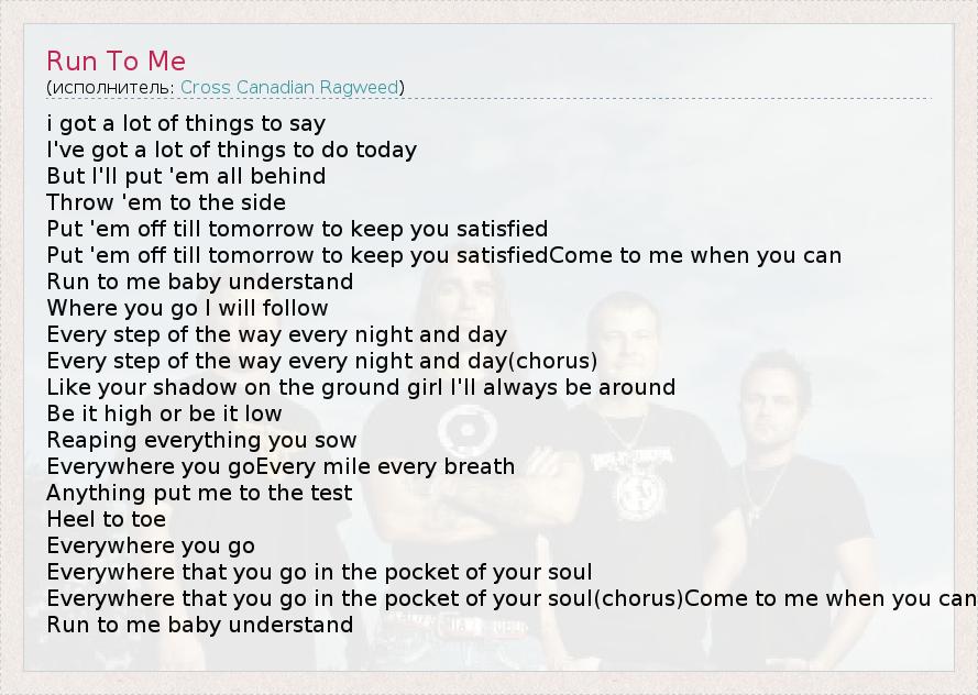 А как ты думаешь, о чем песня "Run To Me" ?