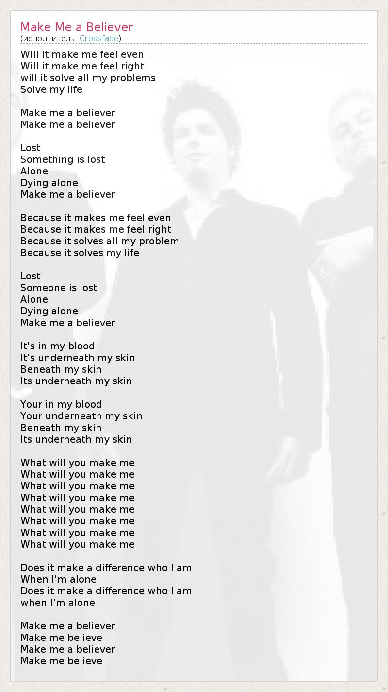 А как ты думаешь, о чем песня "Make Me a Believer" ?