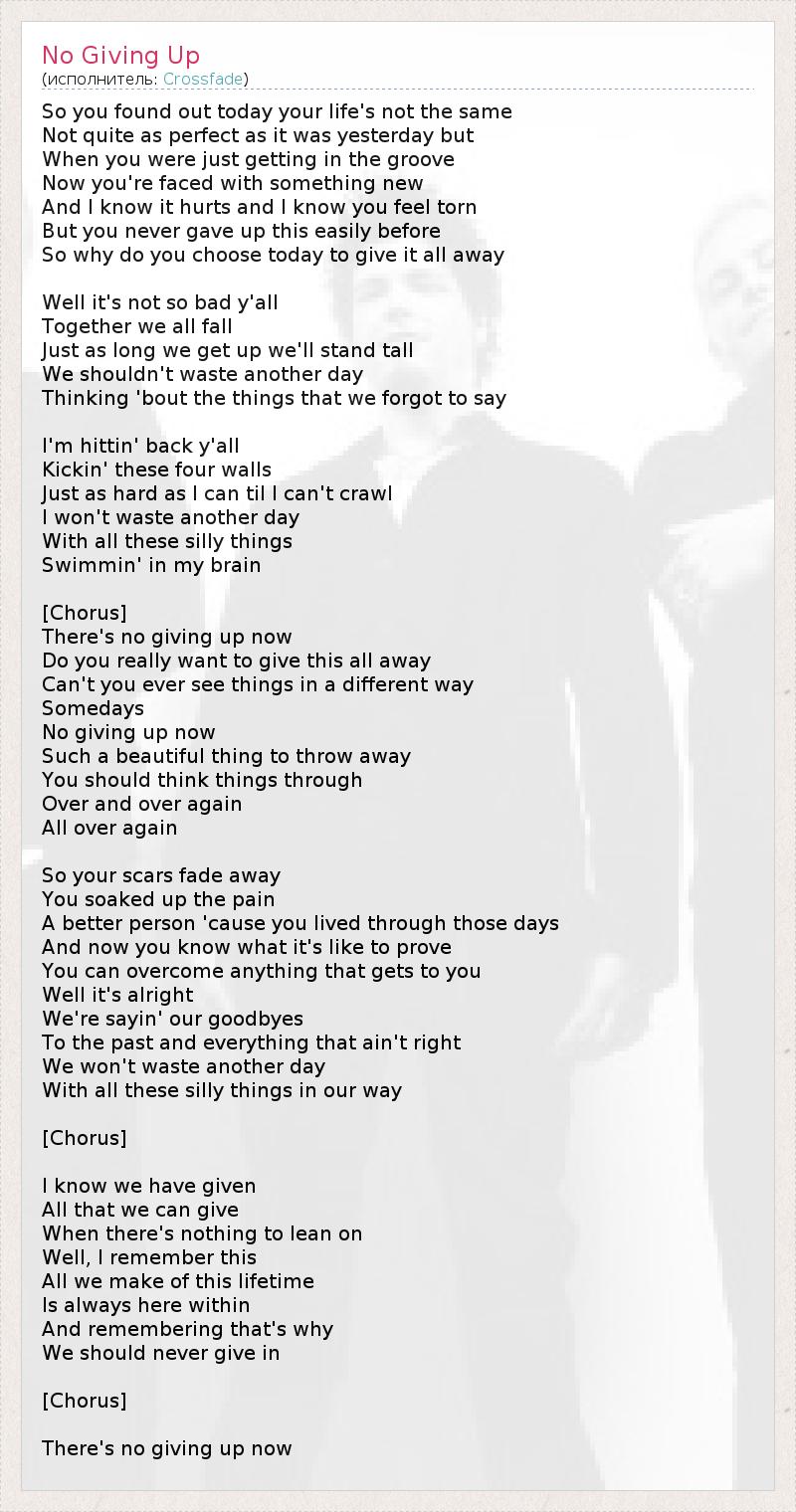 А как ты думаешь, о чем песня "No Giving Up" ?