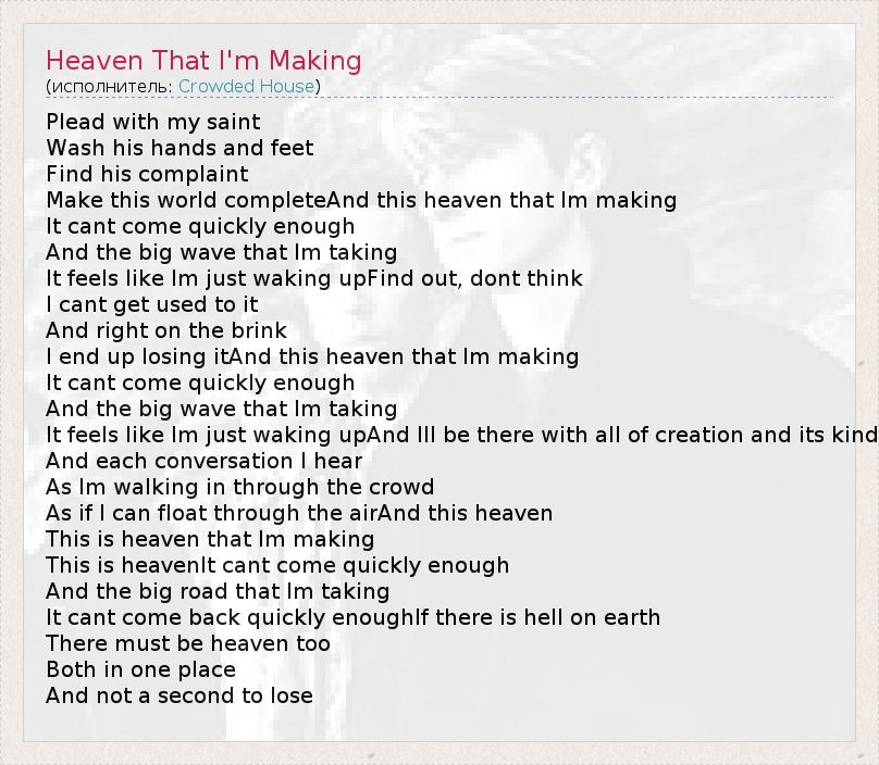 А как ты думаешь, о чем песня "Heaven That I'm Making" ?