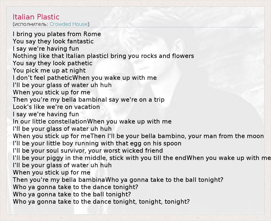А как ты думаешь, о чем песня "Italian Plastic" ?