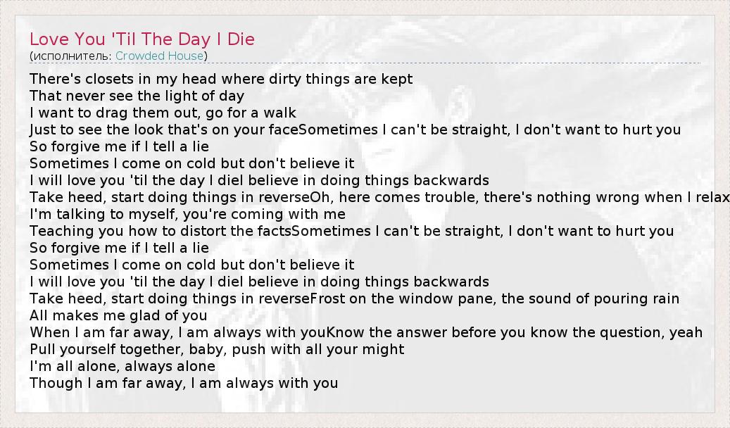 А как ты думаешь, о чем песня "Love You 'Til The Day I Die" ?