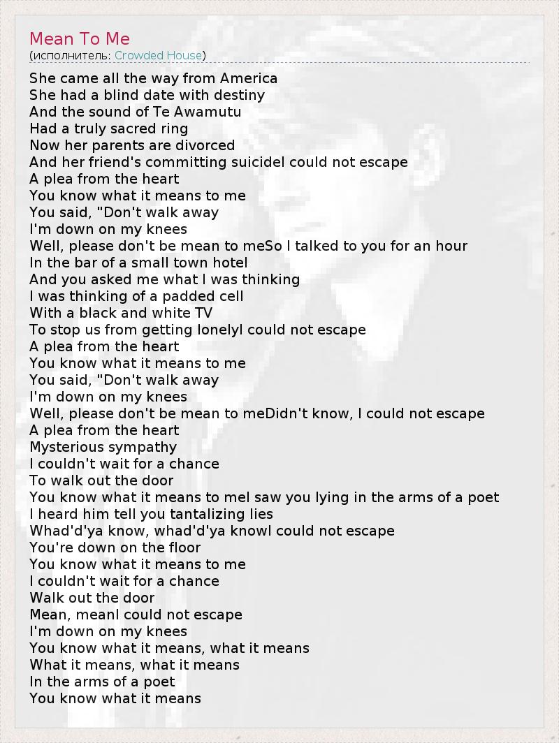А как ты думаешь, о чем песня "Mean To Me" ?