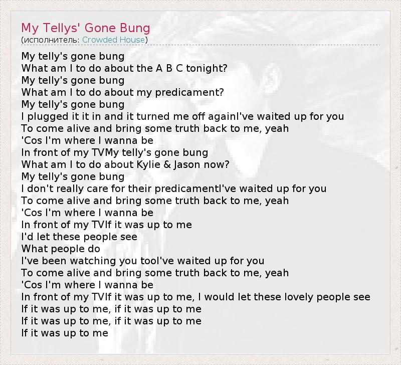 А как ты думаешь, о чем песня "My Tellys' Gone Bung" ?