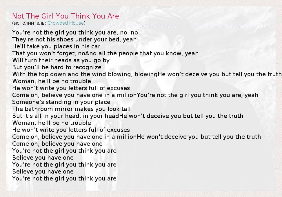А как ты думаешь, о чем песня "Not The Girl You Think You Are" ?