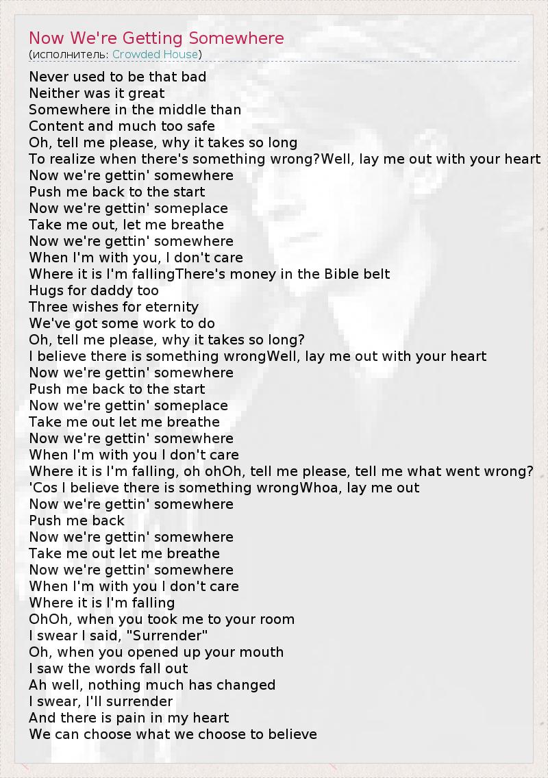 А как ты думаешь, о чем песня "Now We're Getting Somewhere" ?