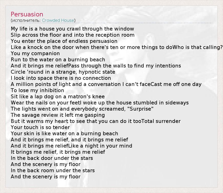 А как ты думаешь, о чем песня "Persuasion" ?