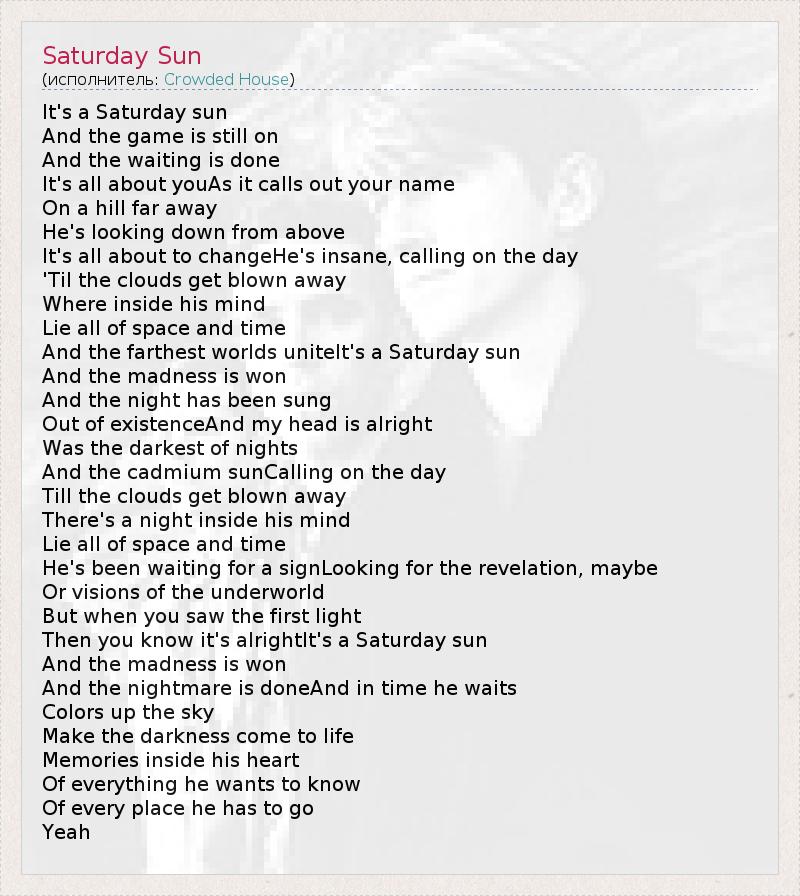 А как ты думаешь, о чем песня "Saturday Sun" ?