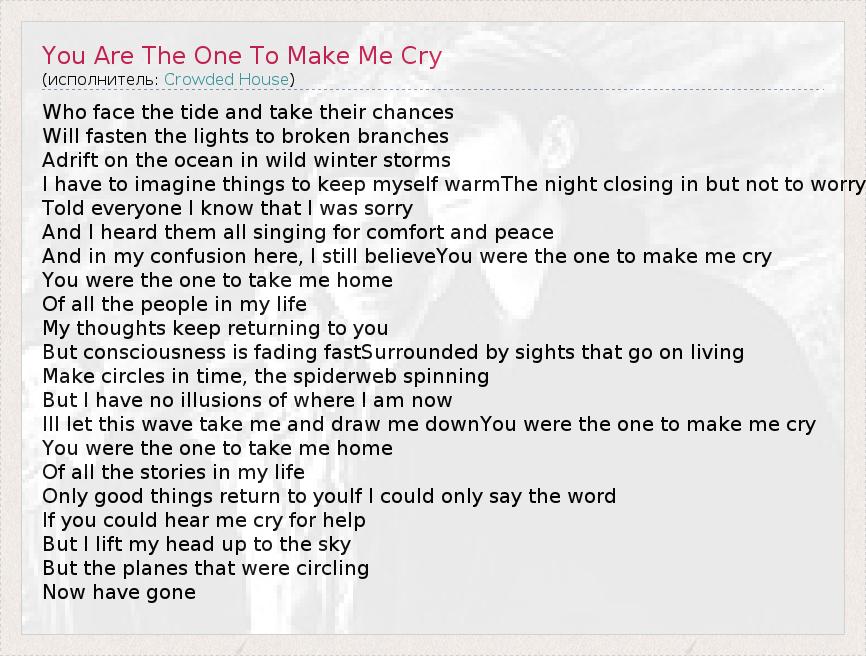 А как ты думаешь, о чем песня "You Are The One To Make Me Cry" ?