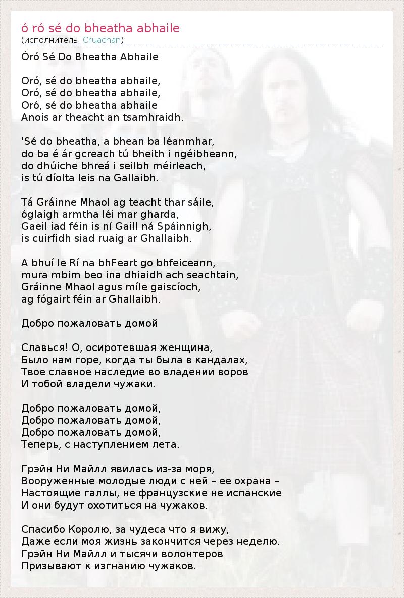 А как ты думаешь, о чем песня "ó ró sé do bheatha abhaile" ?