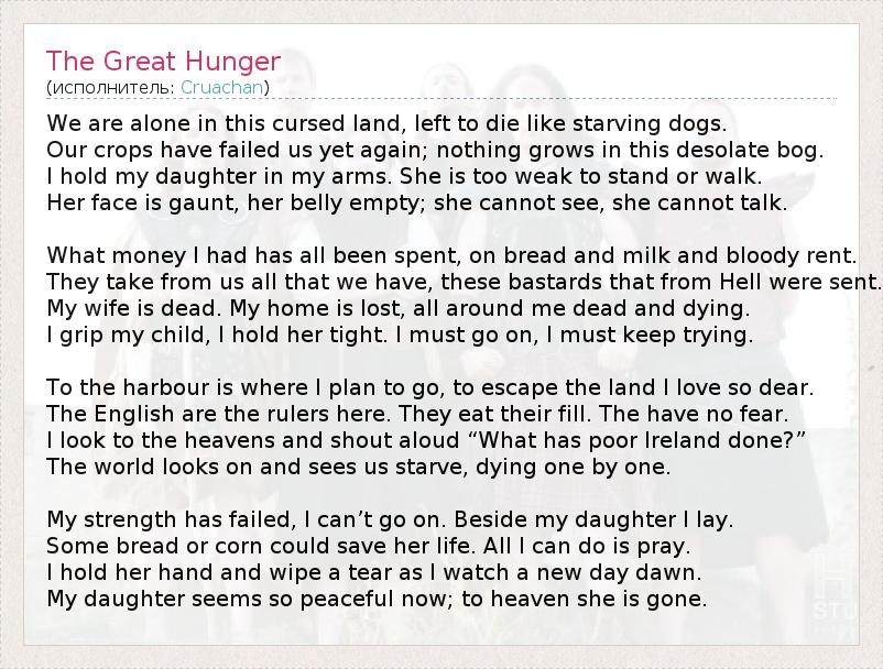 А как ты думаешь, о чем песня "The Great Hunger" ?