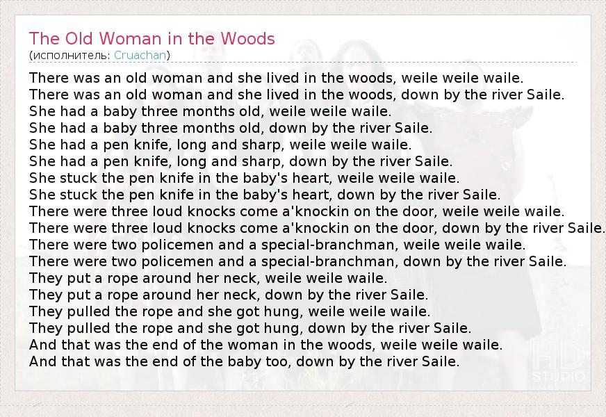 А как ты думаешь, о чем песня "The Old Woman in the Woods" ?