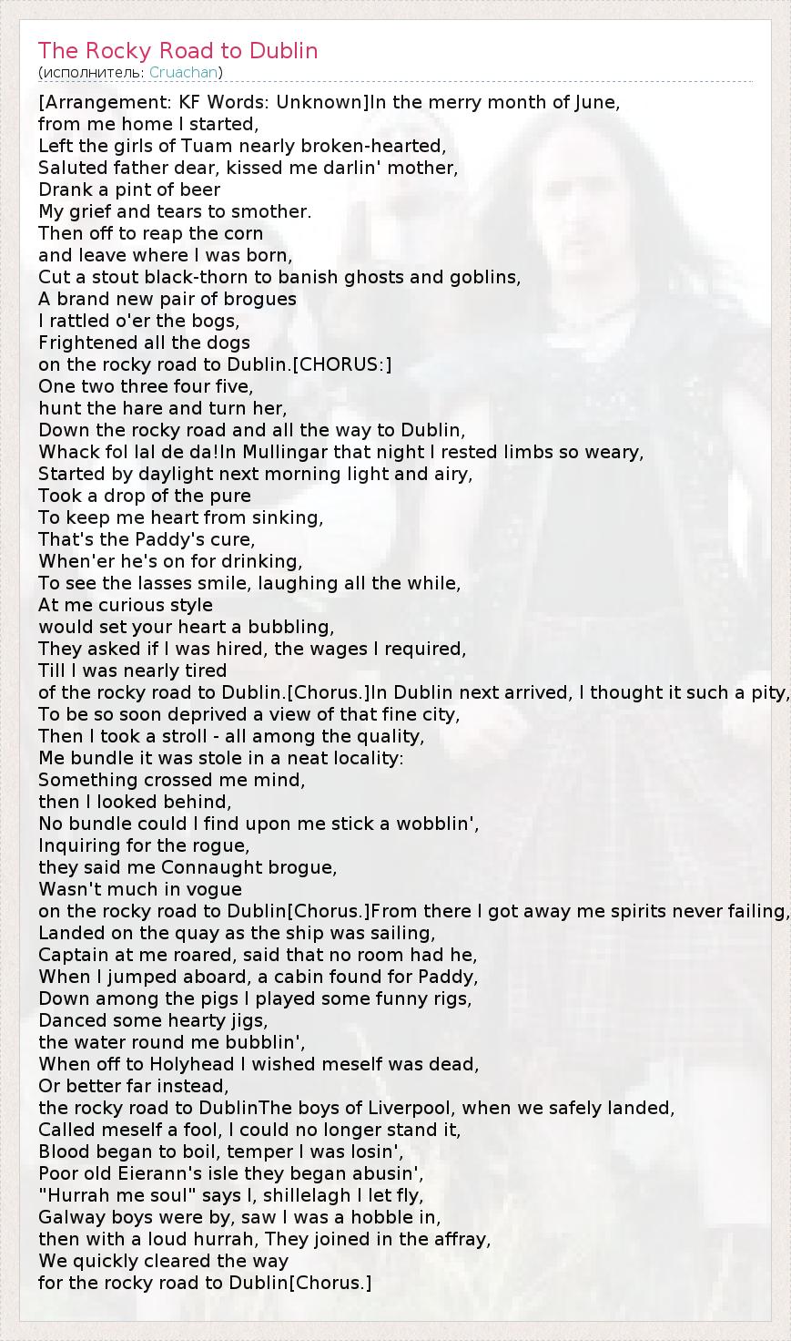 А как ты думаешь, о чем песня "The Rocky Road to Dublin" ?