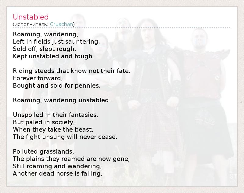 Это интересно:Cruachan — ирландская группа, играющая в стиле фолк-метал. Возникла в 1992 году на обломках группы Minas Tirith, существовавшей с 1989 года. Cruachan смешивают кельтскую музыку, историю и мифологию с блэк-металом, влияние которого на творчество группы со временем уменьшается.Название группы, вероятно, происходит от названия одноимённого города, бывшего столицей старого ирландского королевства... продолжение