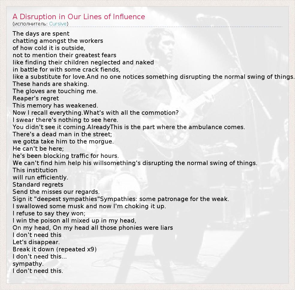 ГлавнаяИсполнителиCursiveA Disruption in Our Lines of Influence