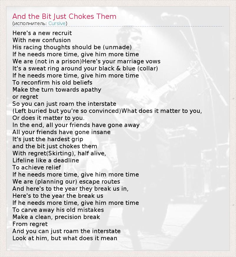 А как ты думаешь, о чем песня "And the Bit Just Chokes Them" ?