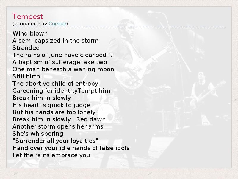 Это интересно:Одной из самых ярких и непопсовых эмо-команд является группа - Cursive, родом из Омаха, штат Небраска. История Cursive началась в середине 90-х, когда эмо только формировалось как направление. Унаследовав дух Nirvana, оригинальность Fugazi и меланхолию The Cure, они заложили мощную бомбу, детонировавшую только через десять лет. Их последователи, интересные... продолжение