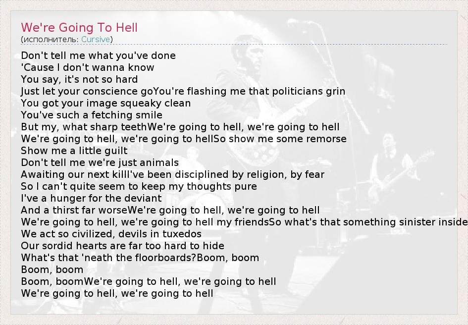 А как ты думаешь, о чем песня "We're Going To Hell" ?